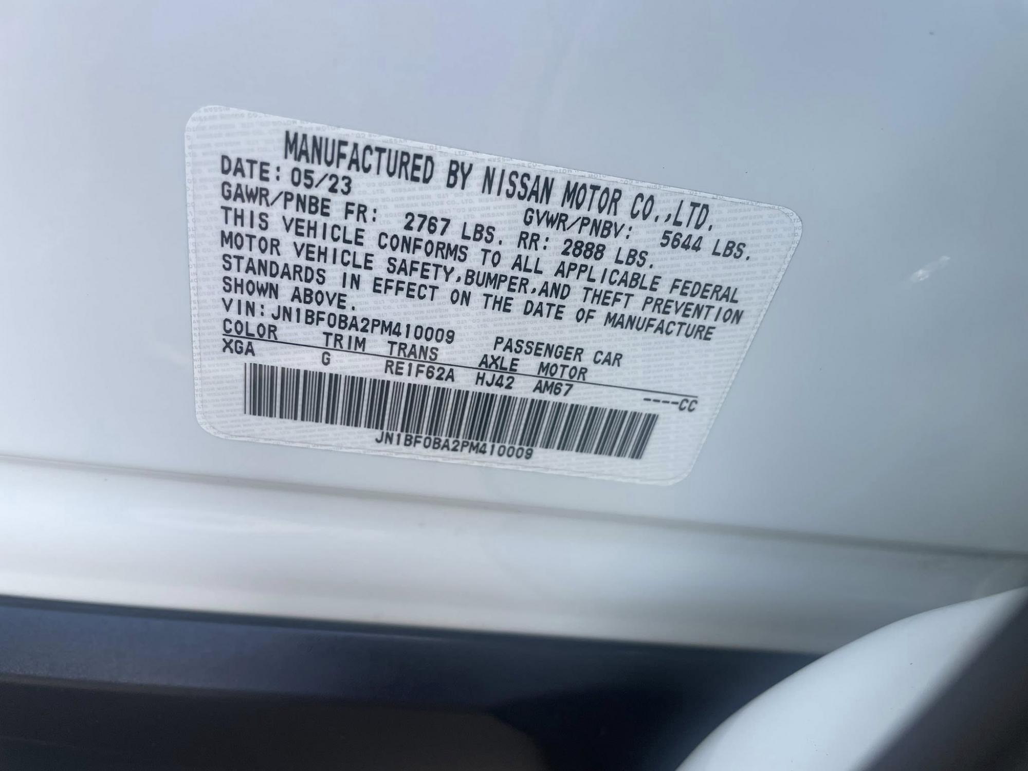• VIN : JN1BF0BA2PM410009